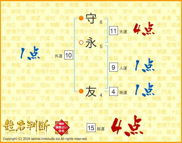 守永友さんの総運は15画の4点!