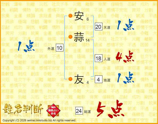 安蒜友さんの天運は20画の1点!