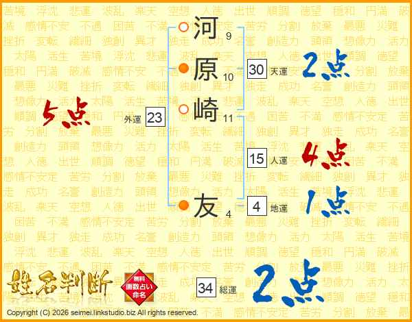 河原崎友さんの天運は30画の2点!