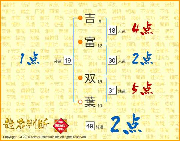 吉(6画)富(12画) 双(18画)葉(13画)