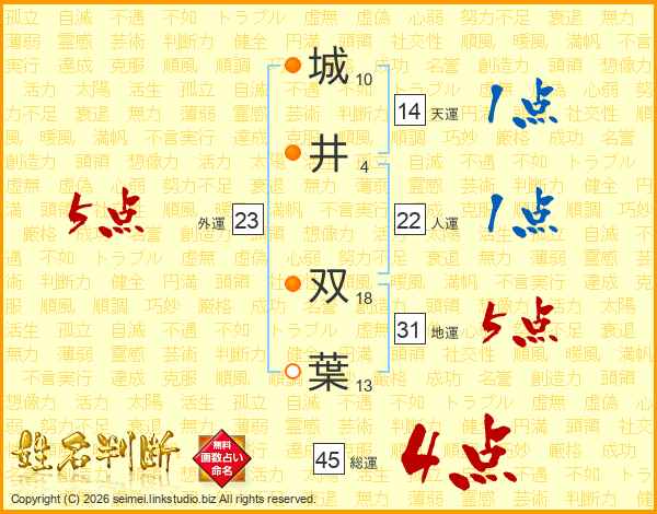 城井双葉さんの総運は45画の4点!