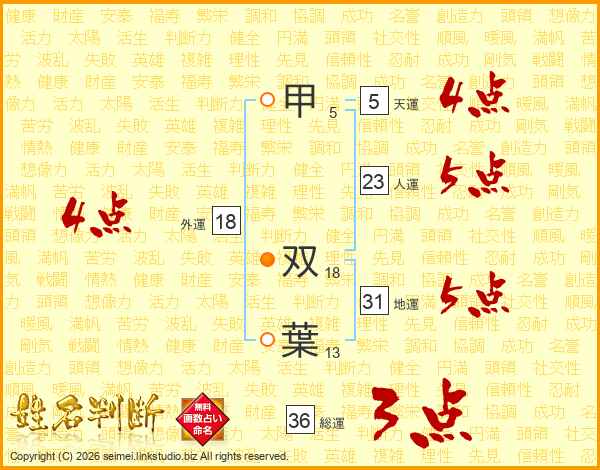甲双葉さんの総運は36画の3点!