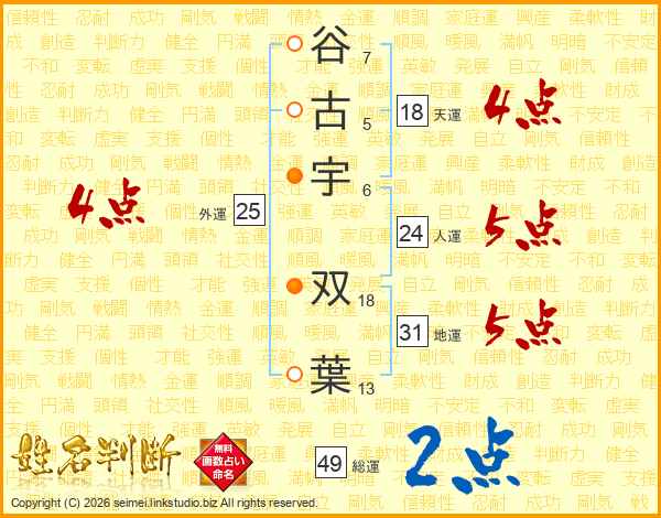 谷古宇双葉さんの総運は49画の2点!