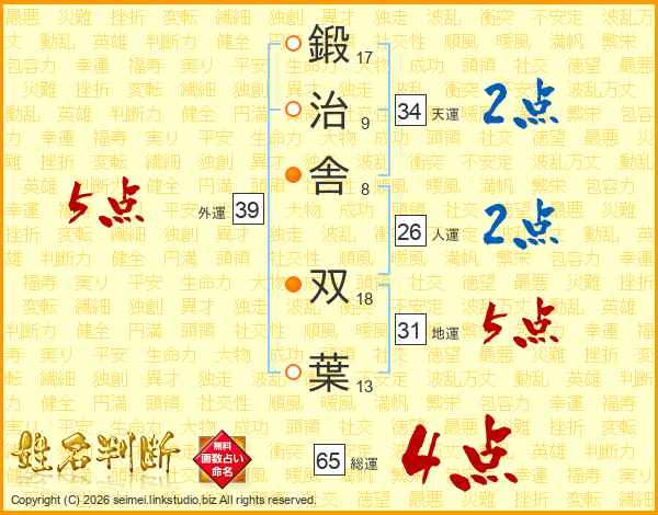 鍛治舎双葉さんの総運は65画の4点!