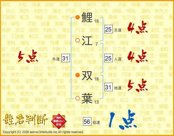 鯉江双葉さんの地運は31画の5点!