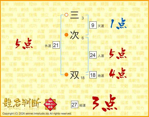 三次双さんの総運は27画の3点!