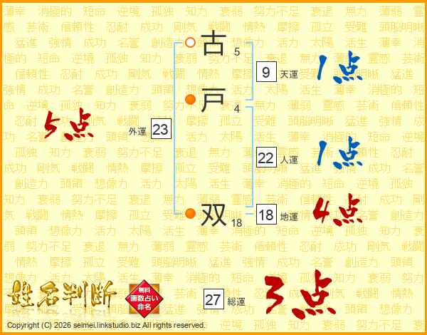 古戸双さんの総運は27画の3点!