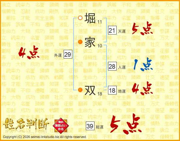 堀家双さんの総運は39画の5点!
