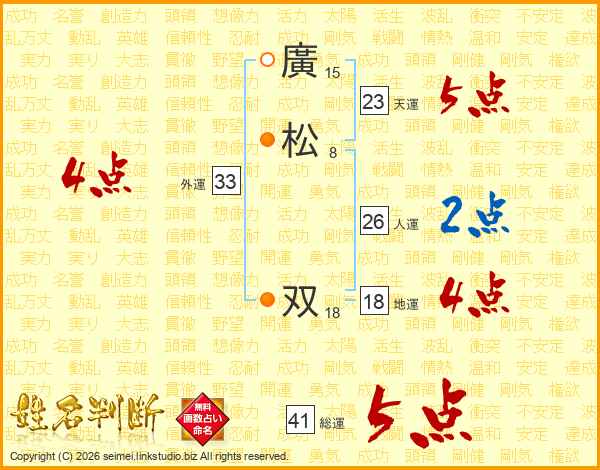 廣松双さんの総運は41画の5点!