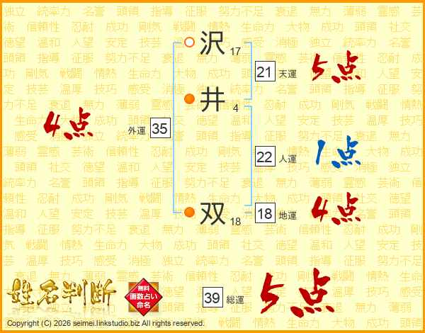 沢井双さんの総運は39画の5点!