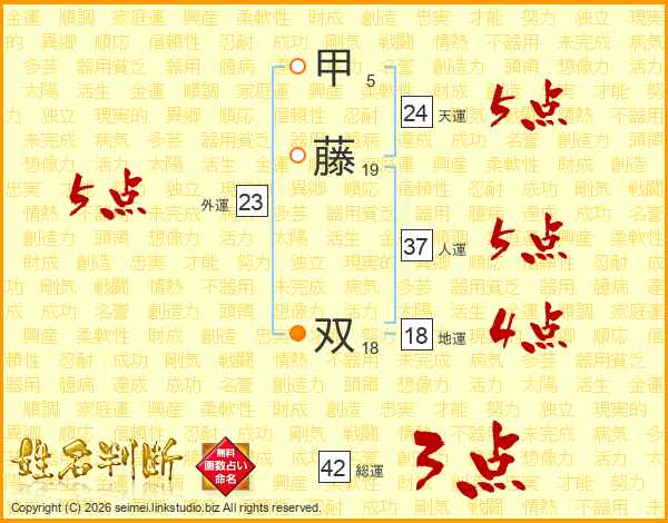 甲藤双さんの人運は37画の5点!