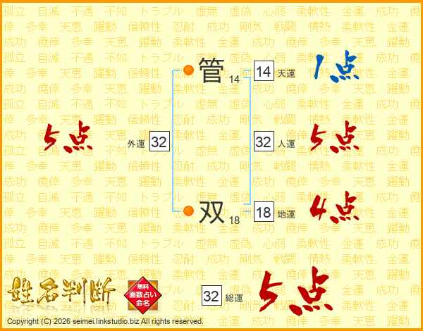 管双さんの総運は32画の5点!