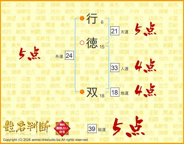 行徳双さんの総運は39画の5点!
