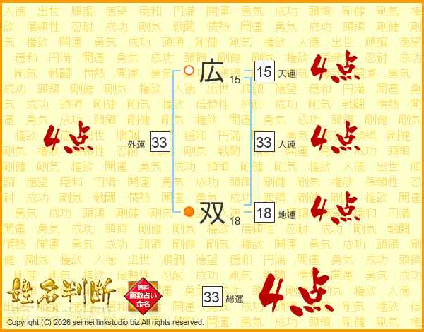 広双さんの総運は33画の4点