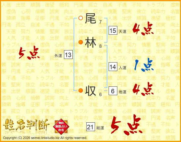 尾林収さんの総運は21画の5点!