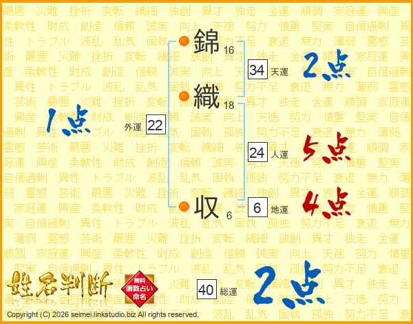 錦織収さんの天運は34画の2点