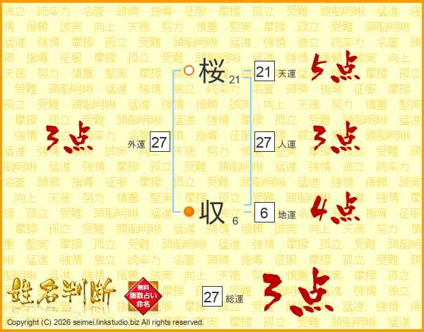 桜収さんの総運は27画の3点!