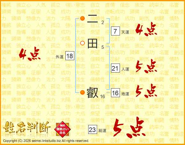 二田叡さんの総運は23画の5点!