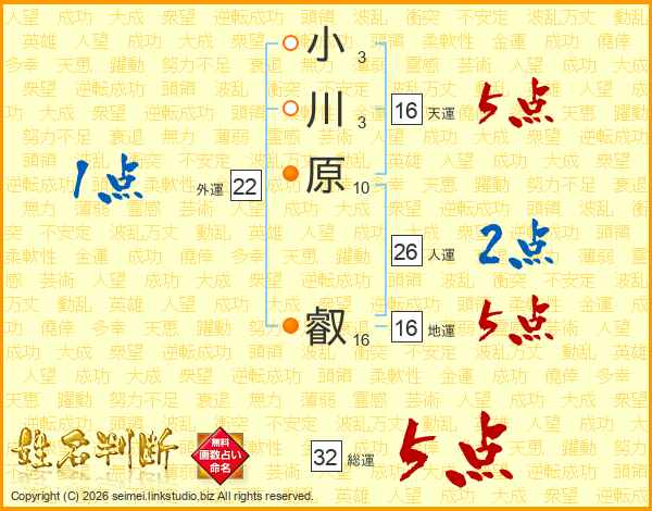 小川原叡さんの総運は32画の5点!