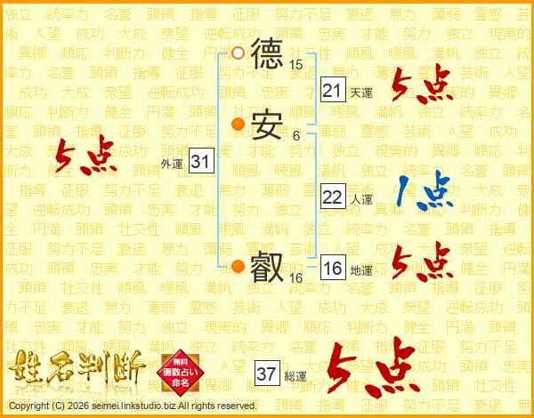 德安叡さんの総運は37画の5点!