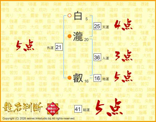 白瀧叡さんの総運は41画の5点!