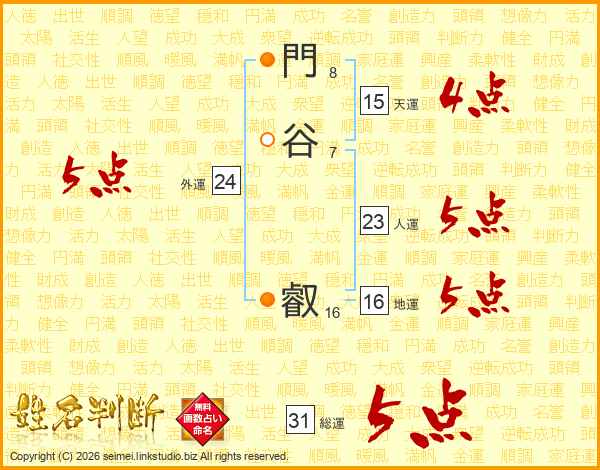 門谷叡さんの総運は31画の5点!