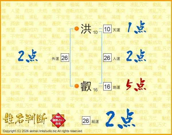 洪叡さんの人運は26画の2点