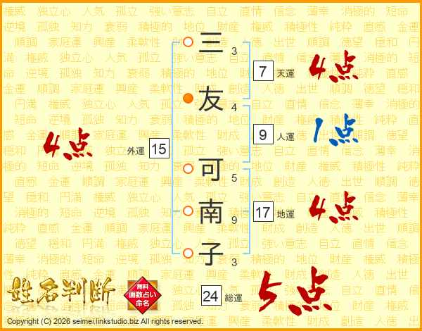 三友可南子さんの外運は15画の4点!