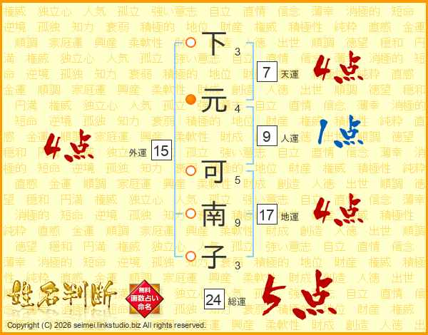 下元可南子さんの外運は15画の4点!