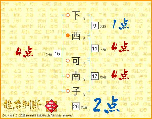下西可南子さんの総運は26画の2点!