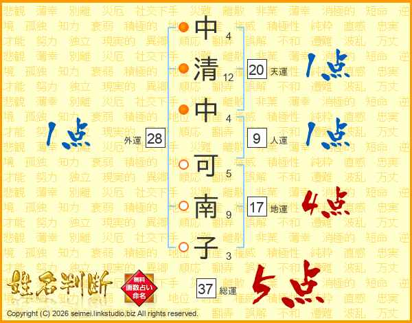 中清中可南子さんの総運は37画の5点!