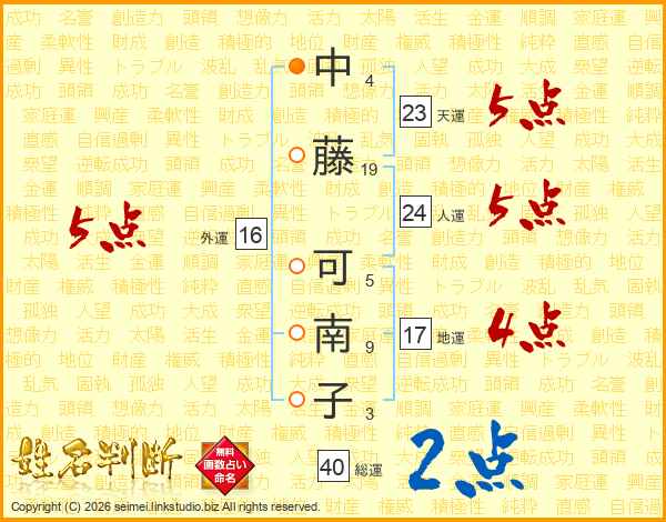 中(4画)藤(19画) 可(5画)南(9画)子(3画)
