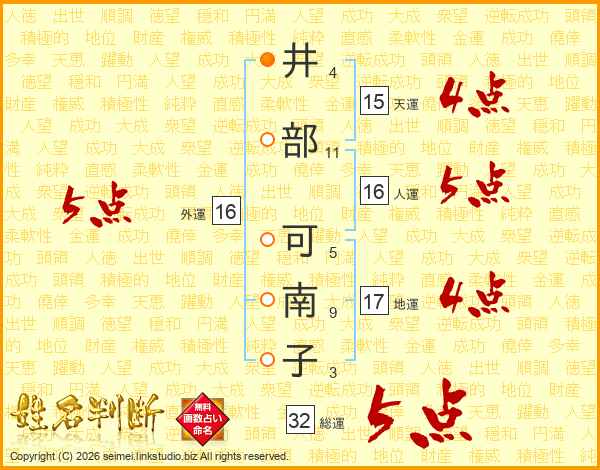 井部可南子さんの総運は32画の5点!