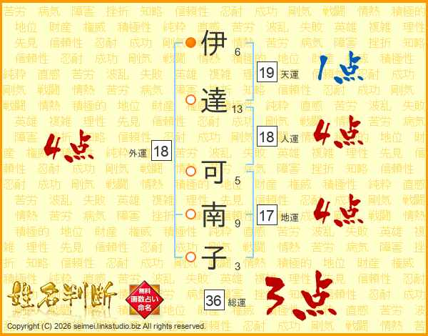 伊達可南子さんの外運は18画の4点!