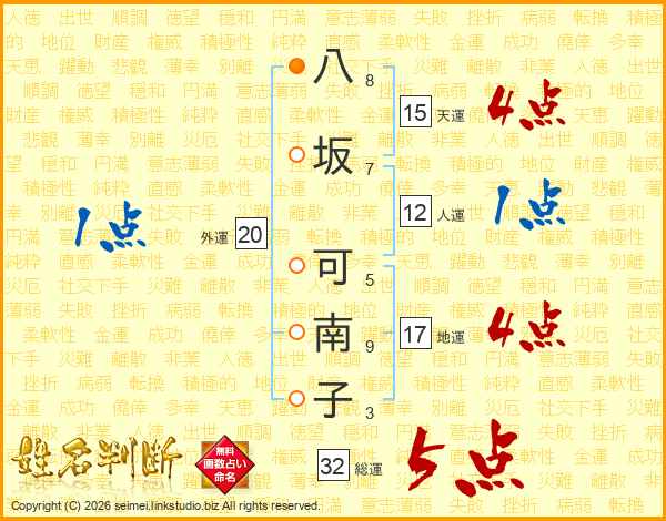 八坂可南子さんの総運は32画の5点!