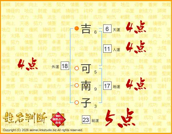 吉可南子さんの外運は18画の4点!