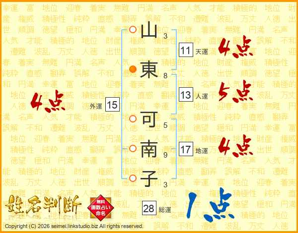 山東可南子さんの外運は15画の4点!