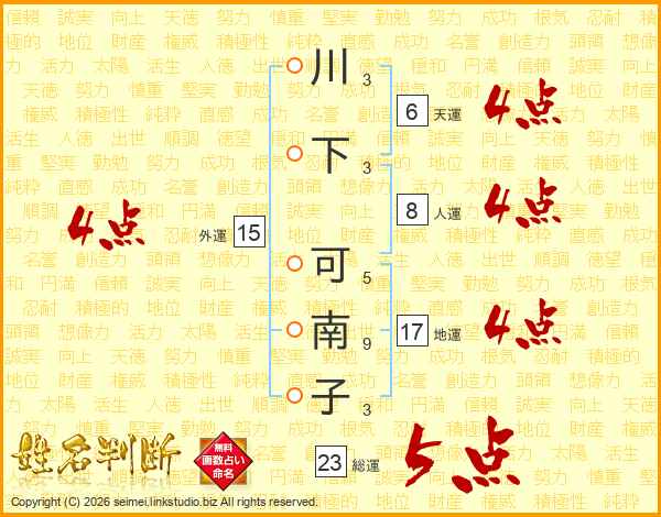 川下可南子さんの外運は15画の4点!