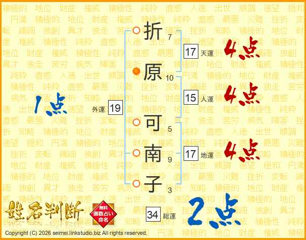 折原可南子さんの総運は34画の2点!