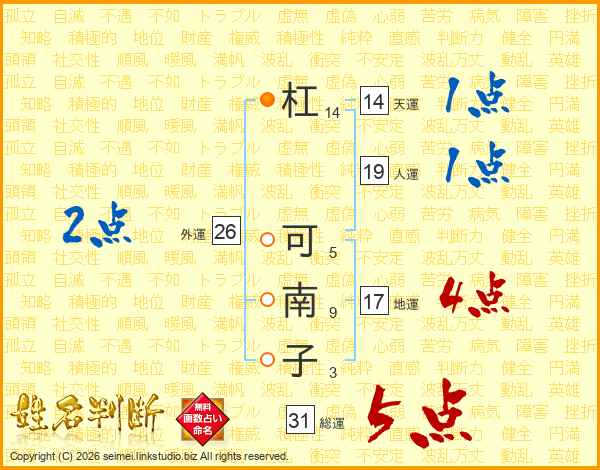 杠可南子さんの総運は31画の5点!