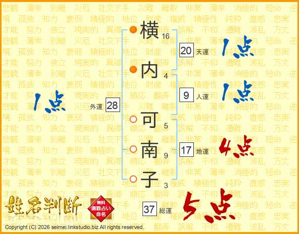 横内可南子さんの総運は37画の5点!