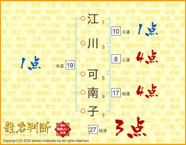 江(7画)川(3画) 可(5画)南(9画)子(3画)