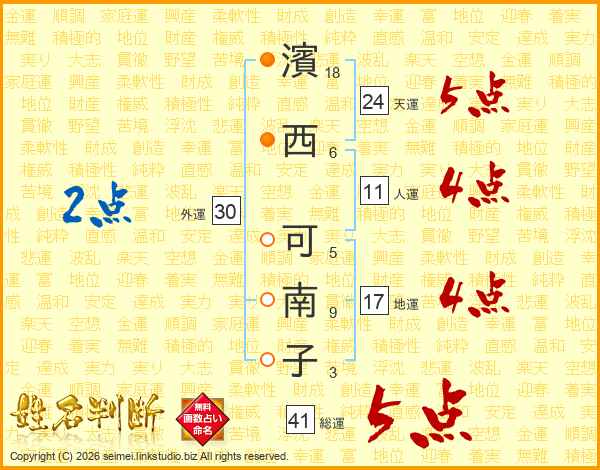 濱西可南子さんの総運は41画の5点!