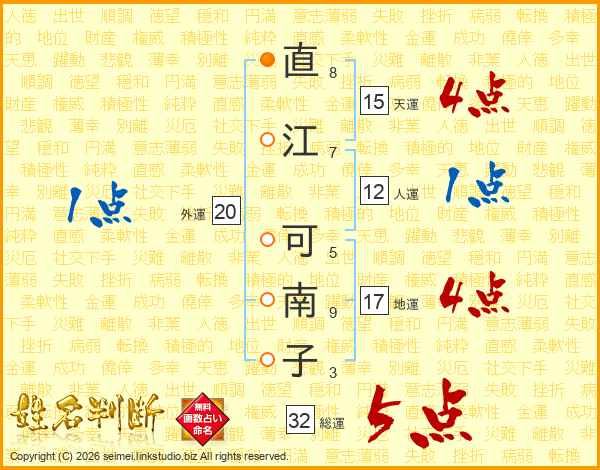 直江可南子さんの総運は32画の5点!