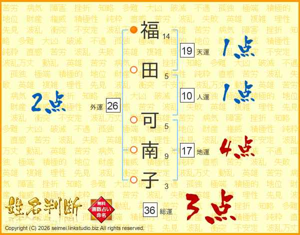 福(14画)田(5画) 可(5画)南(9画)子(3画)