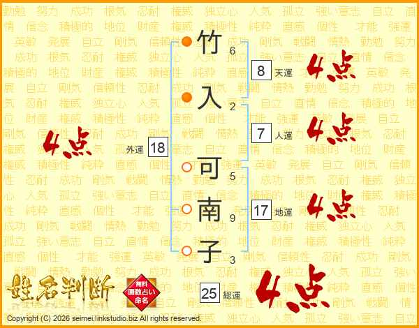 竹入可南子さんの総運は25画の4点!