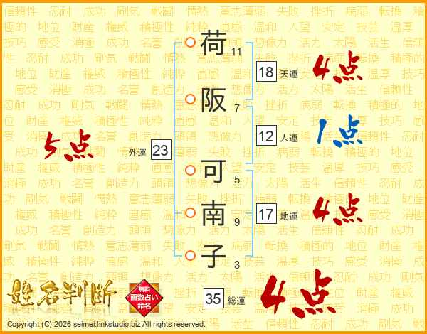 荷阪可南子さんの総運は35画の4点!