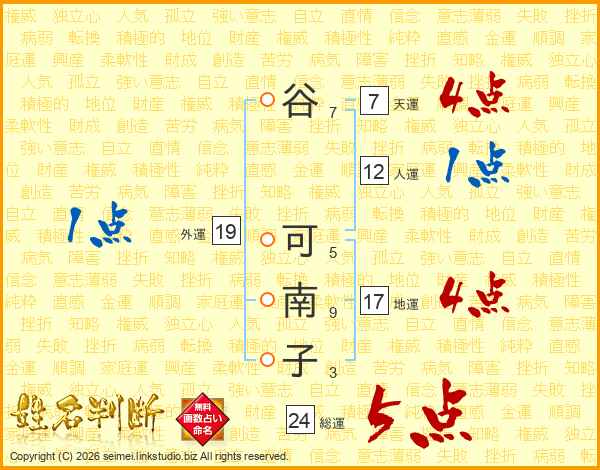 谷可南子さんの地運は17画の4点!