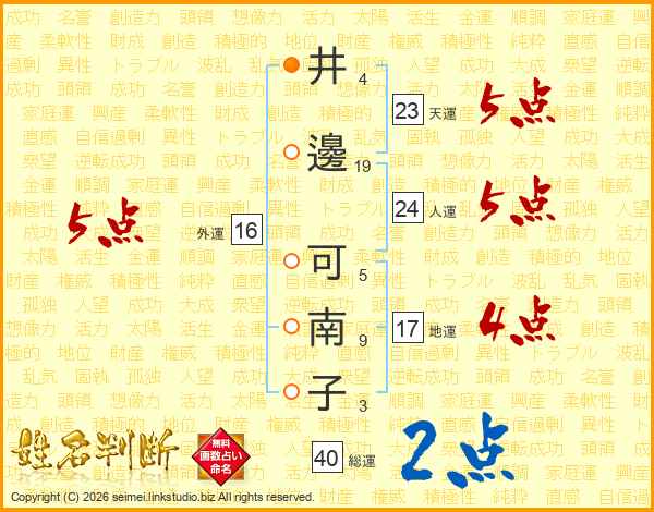 井(4画)邊(19画)  可(5画)南(9画)子(3画)