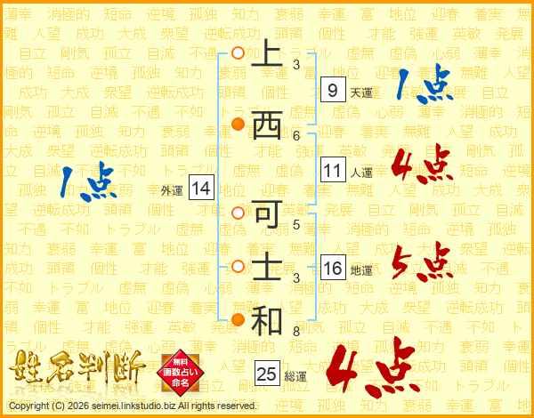 上西可士和さんの総運は25画の4点!